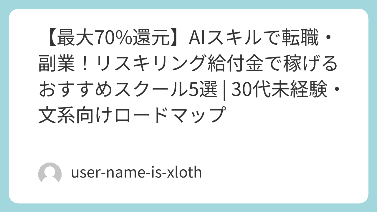 この記事は、IT知識ゼロの僕が、リスキリング給付金(国の補助金)をフル活用して「AIスキル」を身につけ、人生の選択肢を増やした具体的なロードマップです。