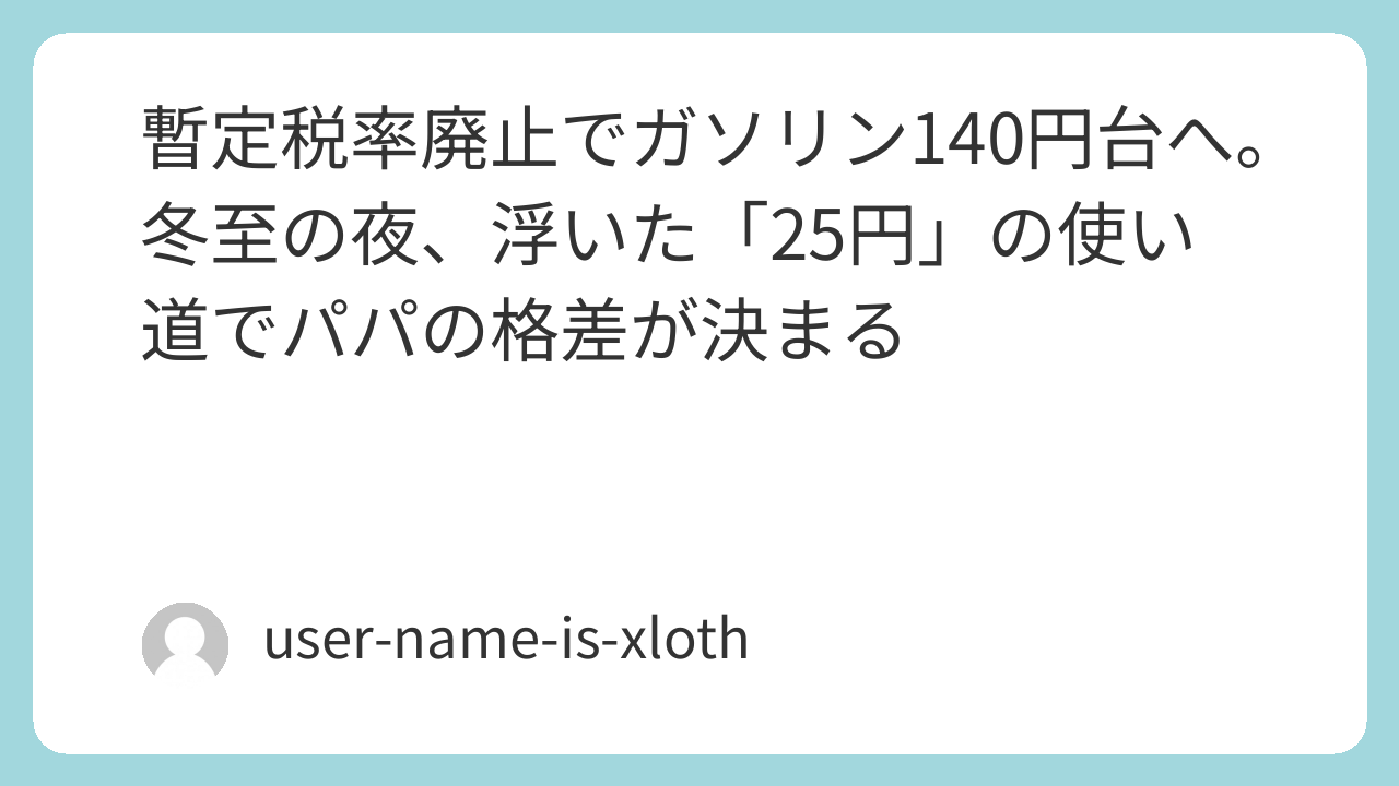 暫定税率廃止でガソリン140円台へ。冬至の夜、浮いた「25円」の使い道でパパの格差が決まる